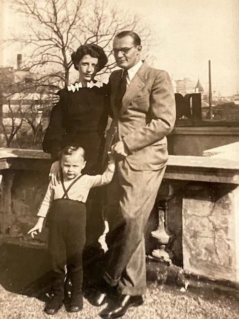 Thus, due to a blow-up over bridge, Irmgard finally got the tickets she had been trying desperately to acquire, and she and Peter left Berlin in summer 1939. Peter was approximately two-and-a-half years old at the time.
